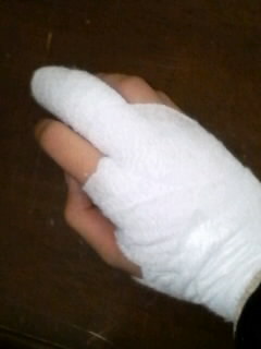 馬鹿な私は、体育のバスケで、取れるかどうかギリギリのボールを反射的に取ろうとして、失敗し、中指があらぬ方向に曲がりました。